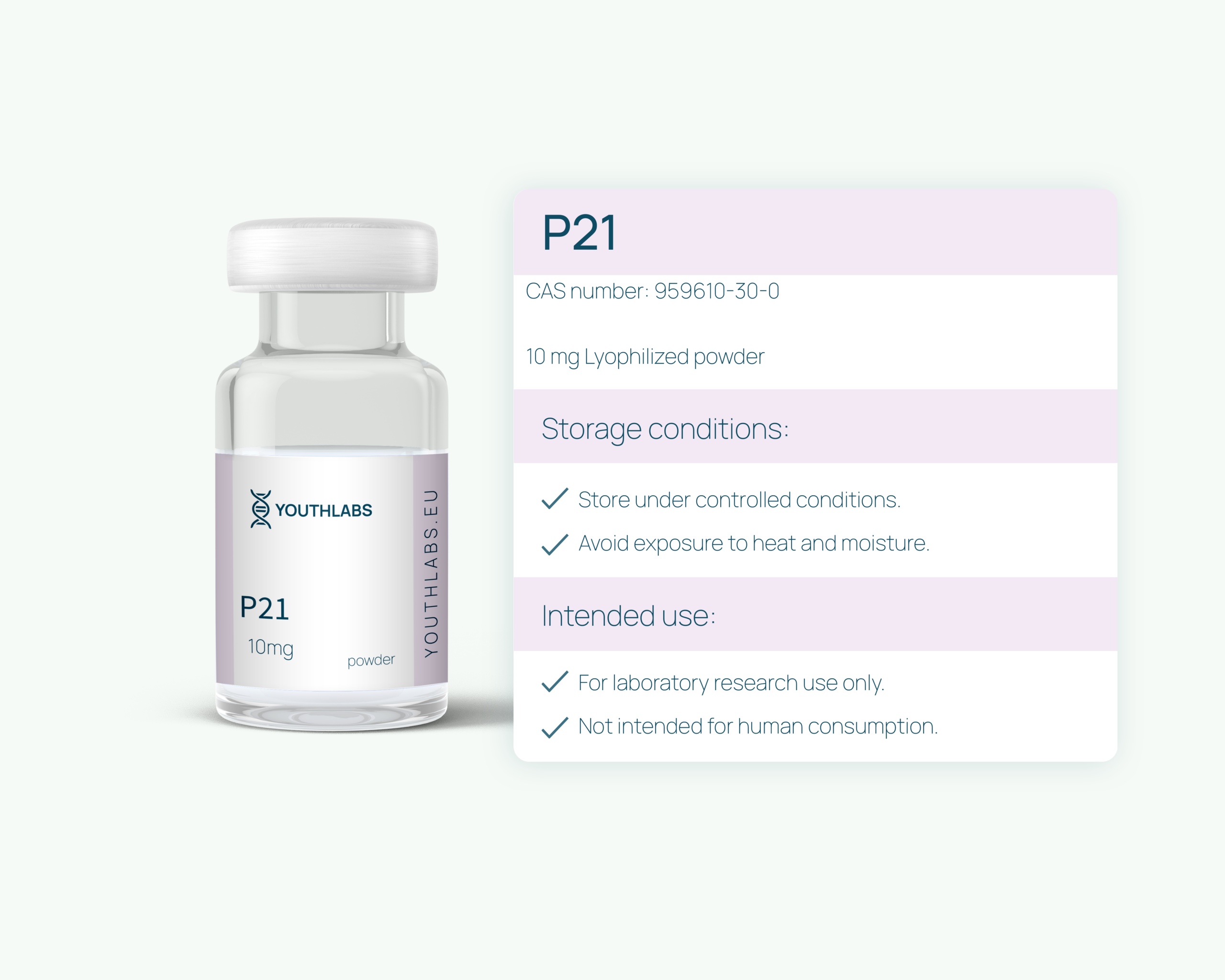 Therefore, all research involving P21 peptide remains limited to laboratory and experimental research models. Accordingly, these activities do not include clinical, therapeutic, or diagnostic use.