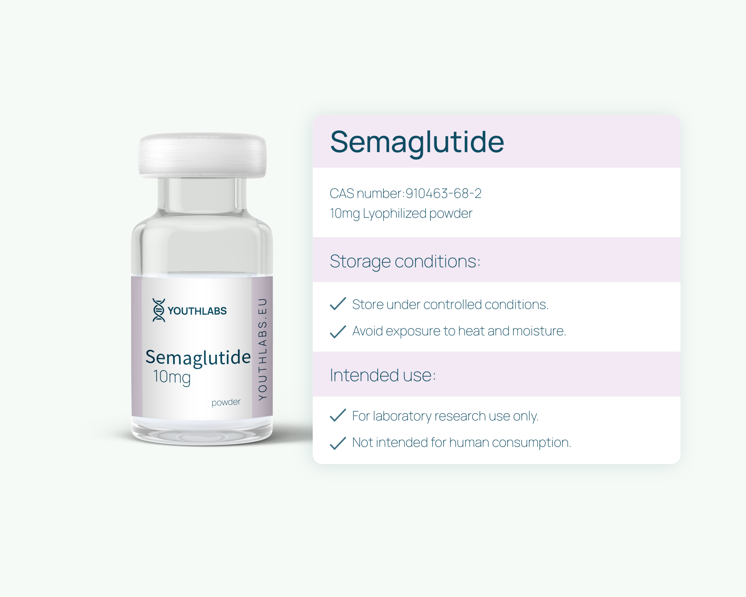 Semaglutide is a research-grade peptide associated with metabolic regulation, energy balance, and body composition processes. Intended exclusively for laboratory and scientific research use.