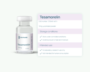 Tesamorelin is a research-grade peptide associated with hormonal regulation, metabolic balance, and body composition processes. Intended exclusively for laboratory and scientific research use.